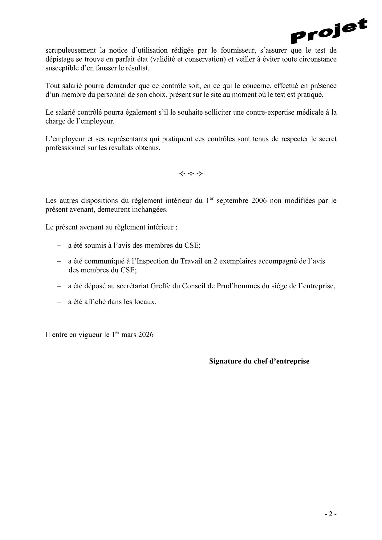 PROJET DE MODIFICATION DU REGLEMENT INTERIEUR (AJOUT) POUR AVIS DU CSE